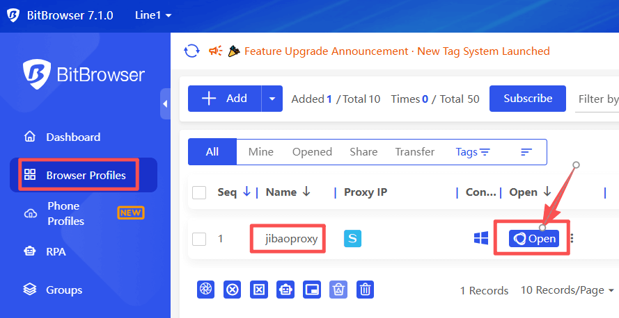 6. In the left sidebar, click “Browser Profile” → “Add” browser → Set the “Proxy”: