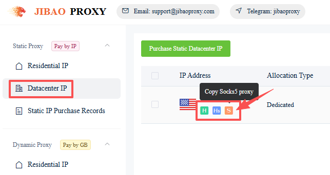 - Go to “Static Datacenter IP” or “Static IP Purchase Records”