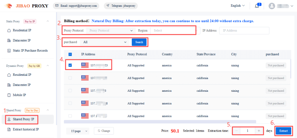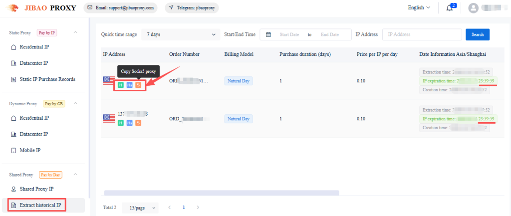 Note: Shared IP billing is based on calendar days. If purchased for one day, the IP is valid until 23:59:59 of the same day.