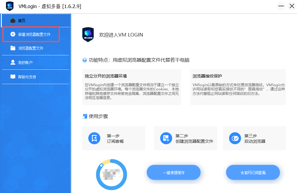 6. 在首页点击“新建浏览器配置文件”。